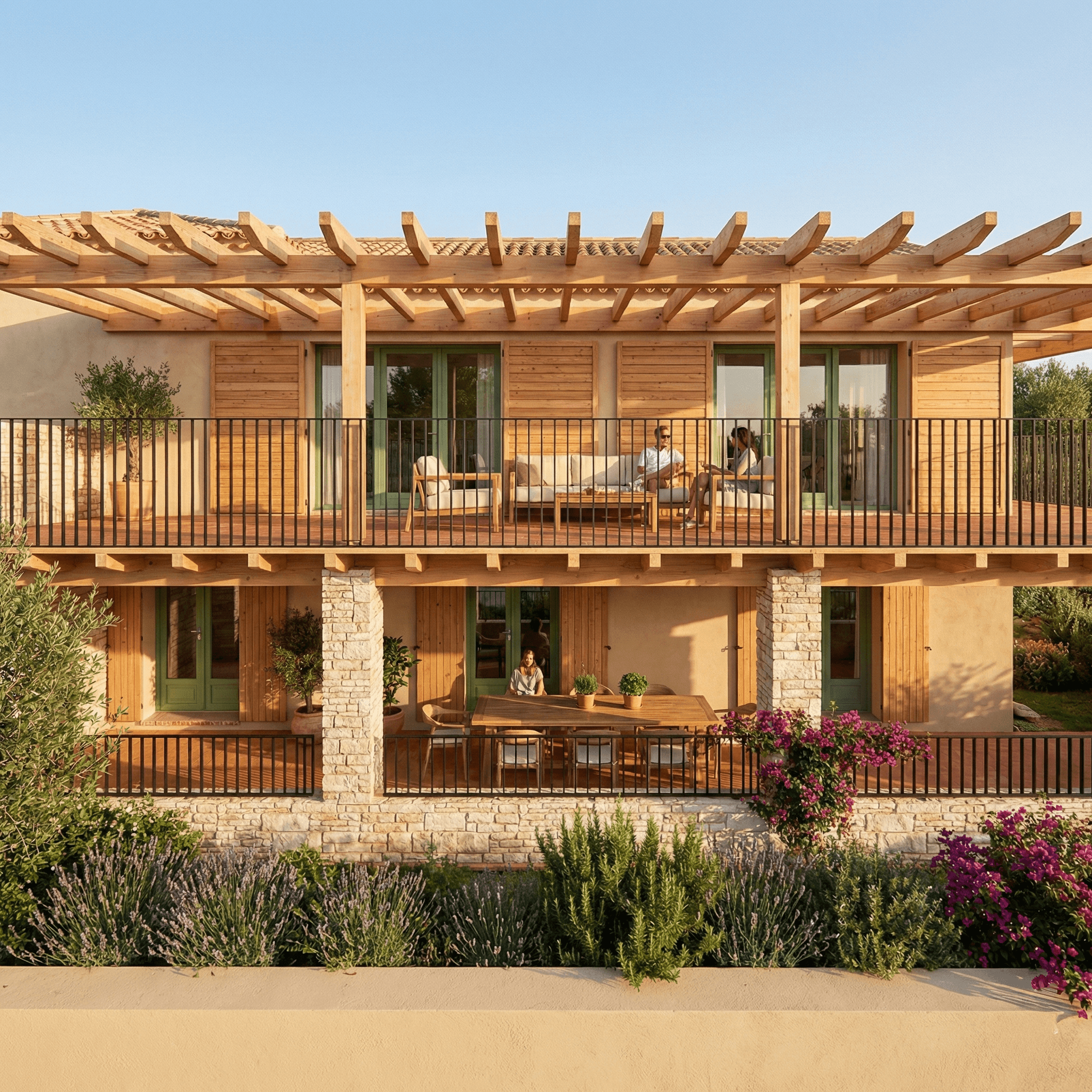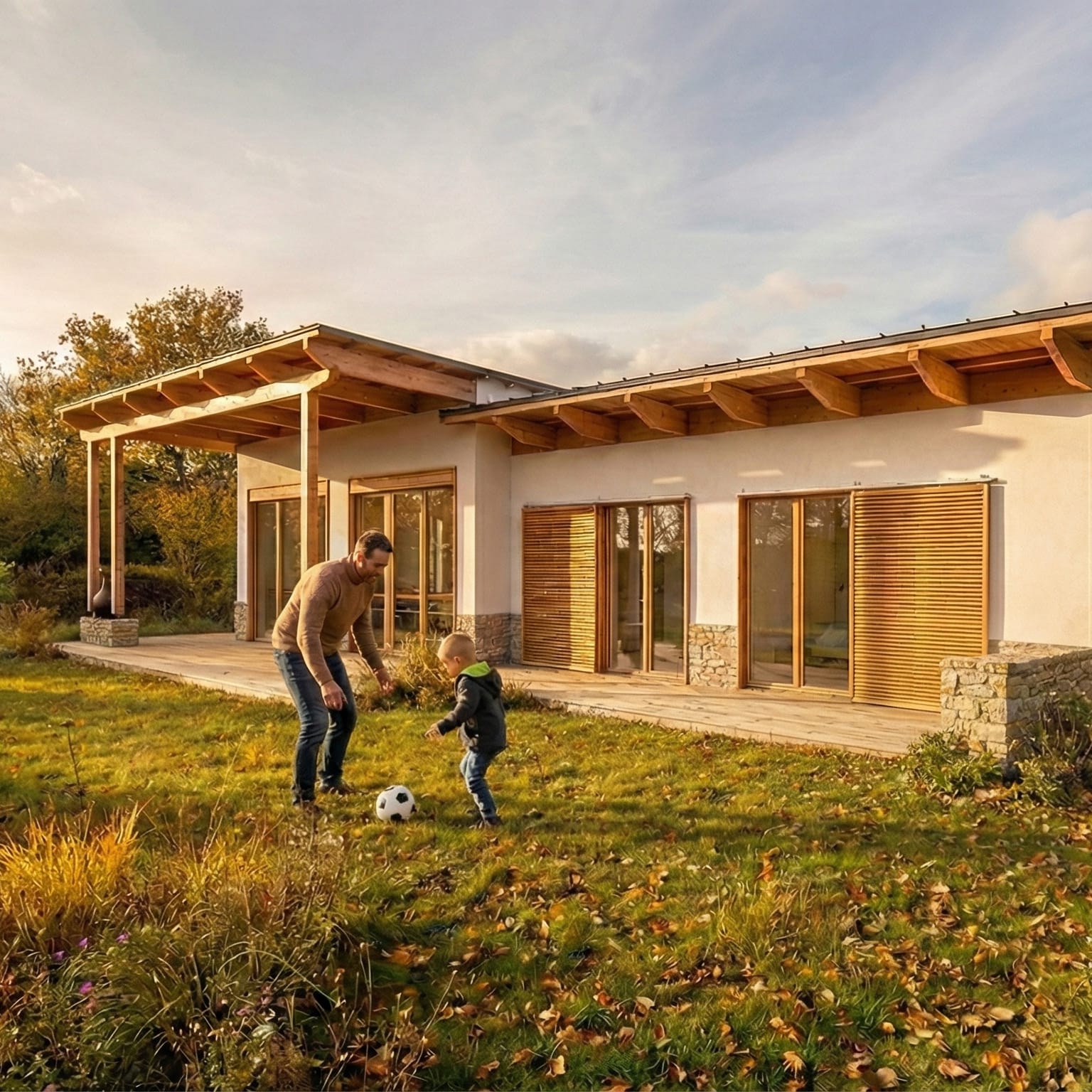 Des matériaux biosourcés et une conception bioclimatique : un confort naturel en toute saison, un air plus sain, des charges réduites et un cadre de vie durable, pensé pour le bien-être des habitants sur le long terme.